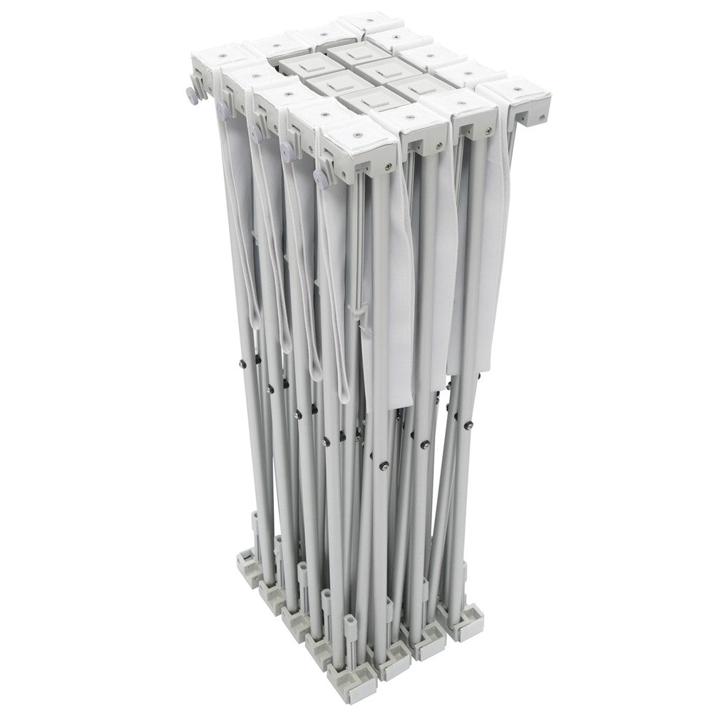 Our 10ft. Fabric Pop Up is the perfect display on the go. It's ready in minutes. The lightweight aluminum alloy frame locks in place using plastic hooks. Fasten the graphic to the frame with hook & loop. Interchangeable graphics make it a versatile choice, Easily collapse the frame with front graphic attached and stow in your carry bag.